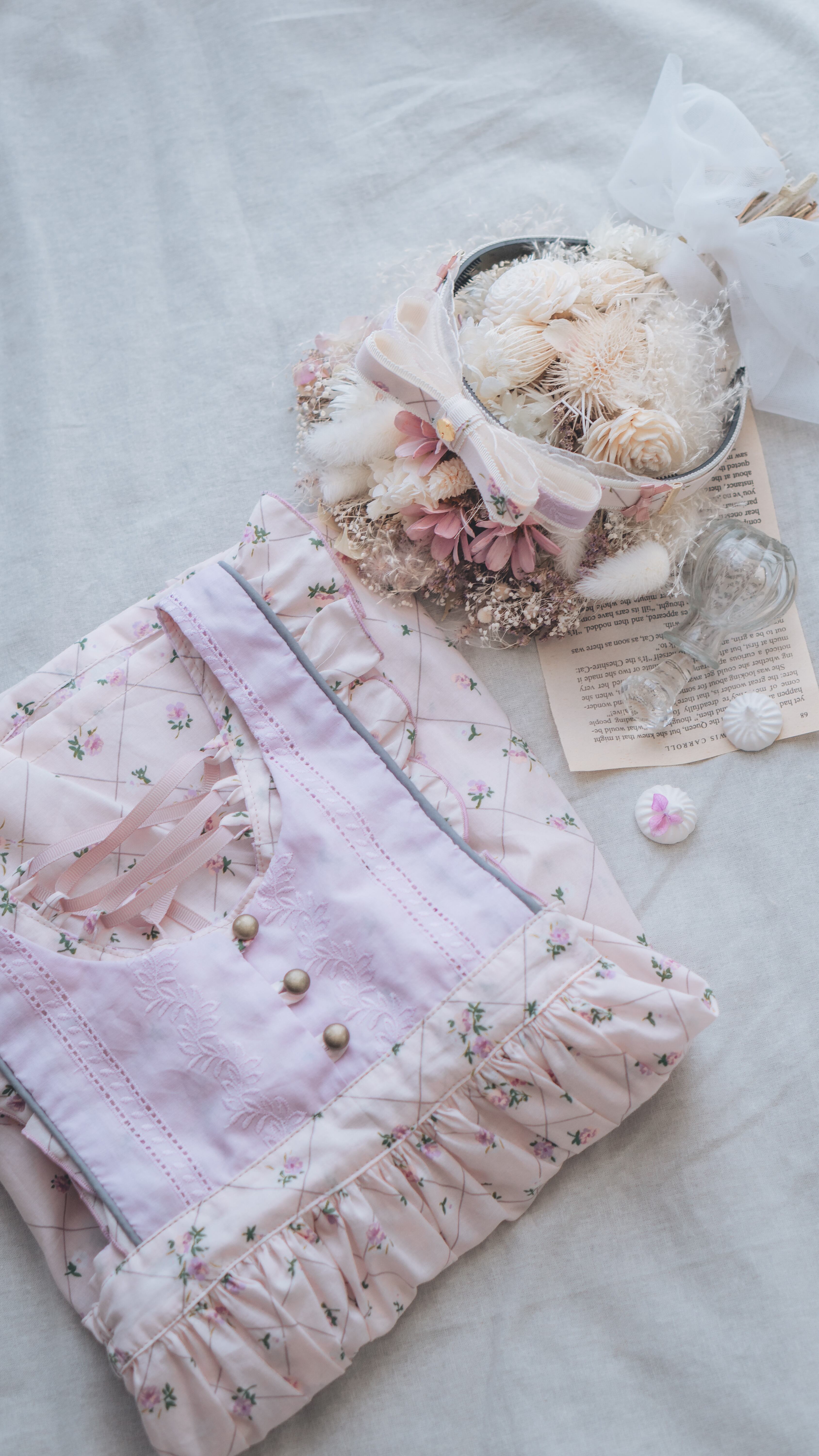 刺繍レース×小花柄のお気に入りな生地合わせで仕立てた